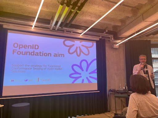 2つ目のセッションでは、技術ディレクターのMark Haineが「ウォレット適合性テスト計画」について発表しました。ここではEUDIウォレット向けの機能適合性テストを紹介し、EUDIWコミュニティを支援するためにOIDFが進めている適合性関連の成果物の概要を説明しました。これらの成果物には、テストツールの改善、新しいテストの追加、そしてテスト要件の定義と公開に関するガバナンスプロセスの強化が含まれます。